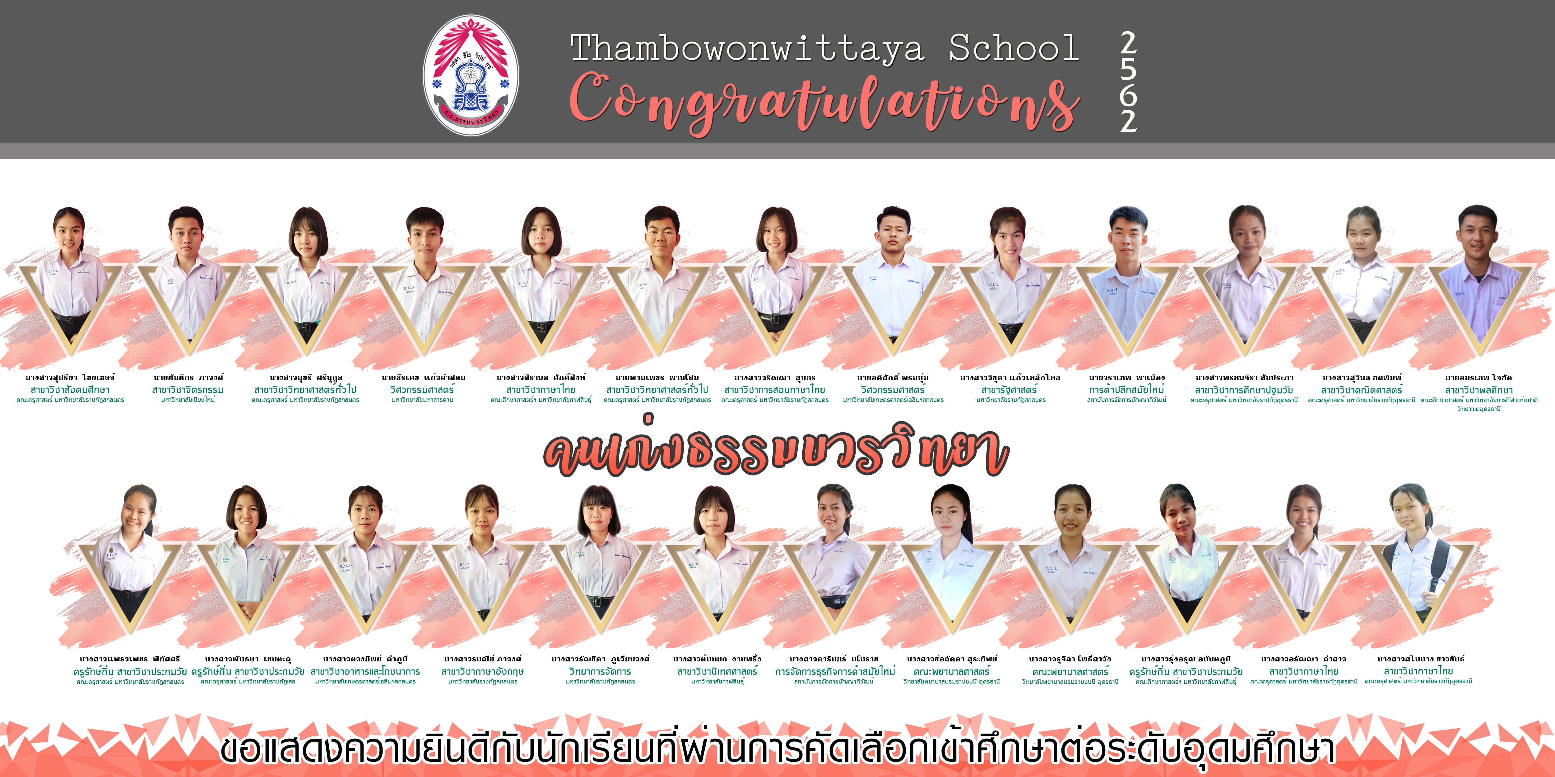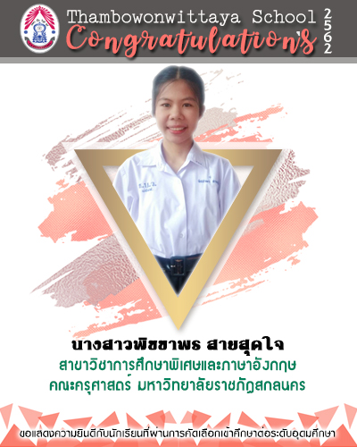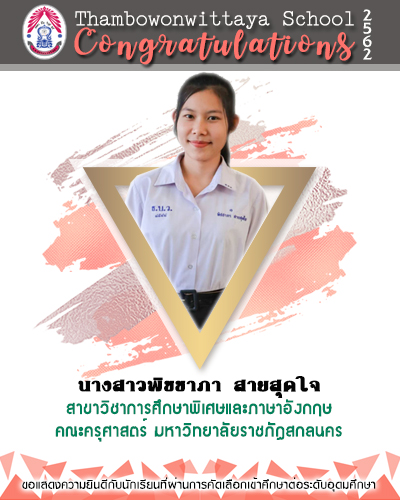 ขอแสดงความยินดีกับนักเรียนที่ผ่านการคัดเลือกเข้าศึกษาต่อในระดับอุดมศึกษา