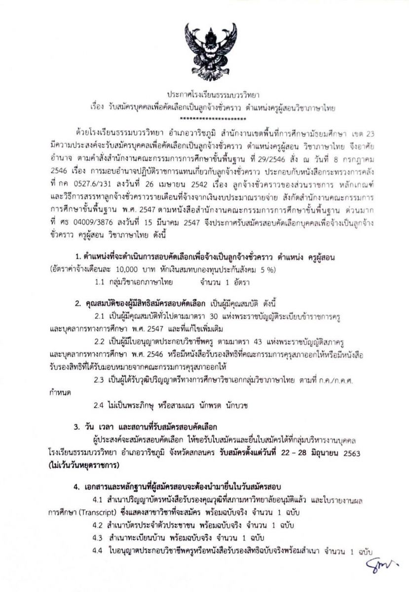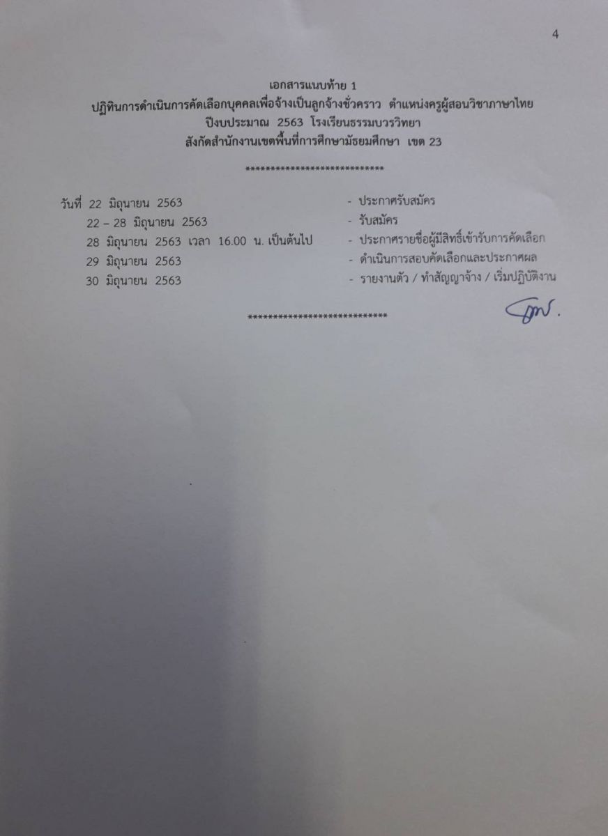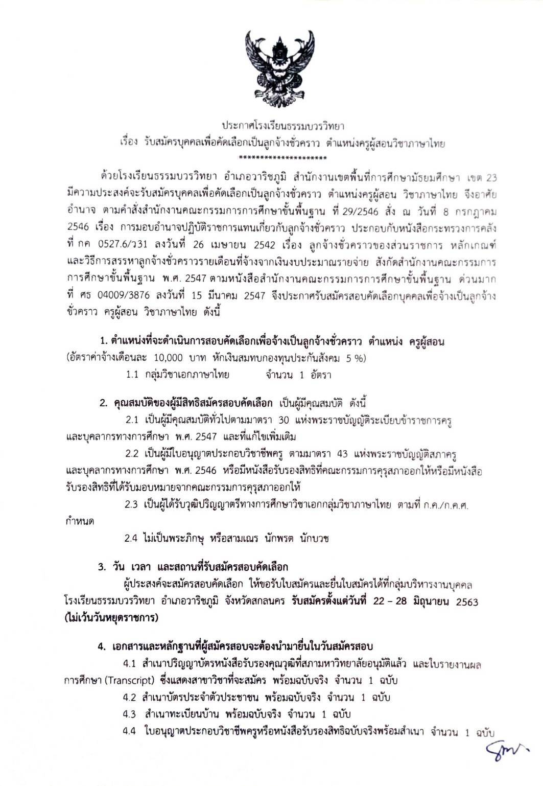 ประกาศ รับสมัครบุคคลเพื่อคัดเลือกเป็นลูกจ้างชั่วคราว ตำแหน่งครูผู้สอนวิชาภาษาไทย