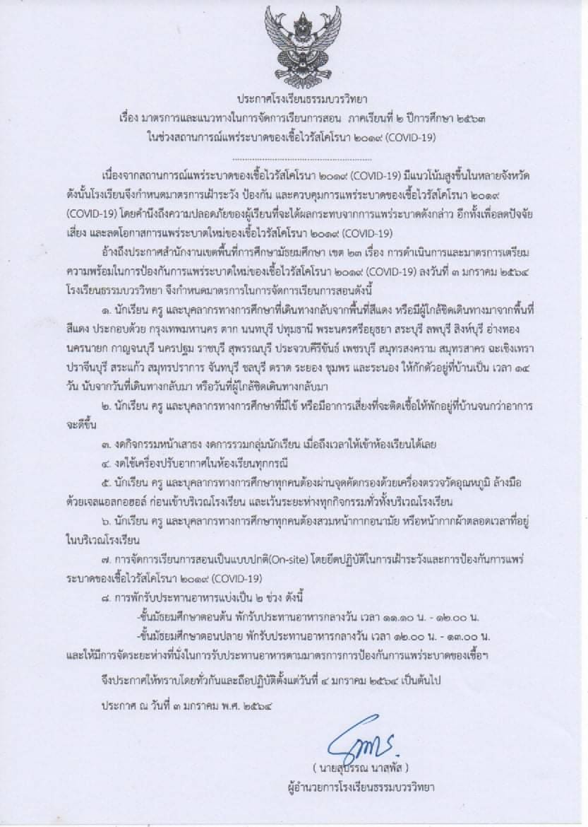 มาตรการและแนวทางจัดการเรียนการสอน (COVID 19)