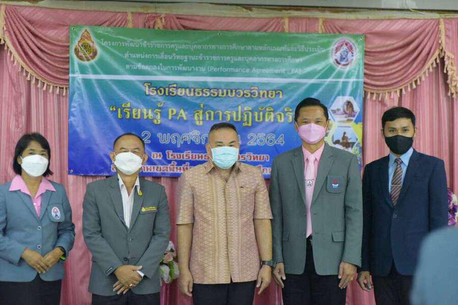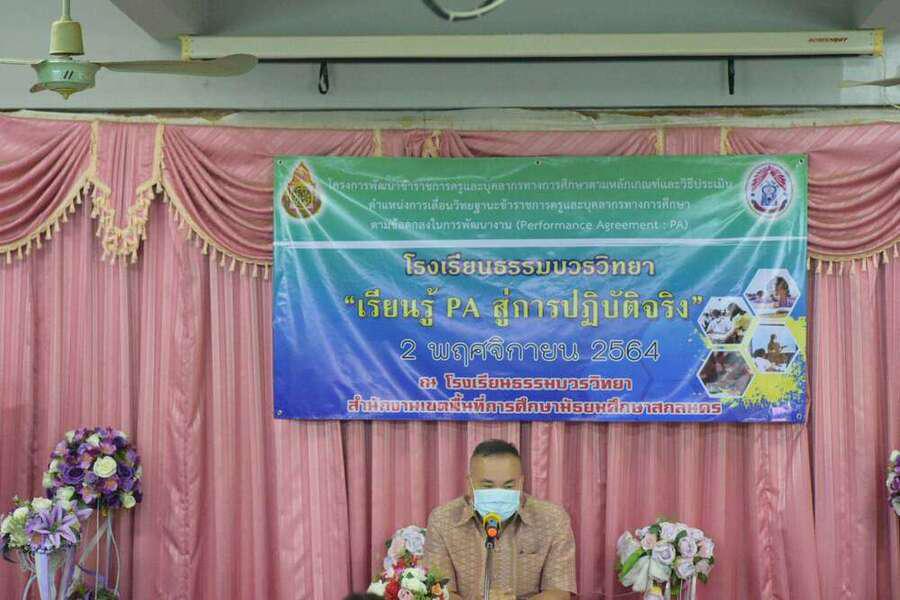วันที่ 2 พฤศจิกายน 2564 เวลา 08.30 น. - 16.00 น. นายอังกูร บุญรักษา ผู้อำนวยการโรงเรียนธรรมบวรวิทยาและนายกัทรพล ประเสริฐแก้ว ผู้อำนวยการโรงเรียนวาริชวิทยา พร้อมคณะผู้บริหาร คณะครูและบุคลากรทางการศึกษา ได้รับเกียรติจากท่น ดร. ปราโมทย์ ภูมิพันธ์ ผู้อำนวยการสำนักงานเขตพื้นที่การศึกษามัธยมศึกษาสกลนคร เป็นประธานในพิธีเปิด การอบรมเรื่องพัฒนาข้ราชการครูและบุคลากรทางการศึกษาเพื่อขอมีหรือเลื่อนวิทยฐานะตามมาตรฐานตำแหน่ง หลักเกณฑ์การเลื่อนวิทยฐานะ ระบบ PA (Performane Agreement) เพื่อพัฒนาศักยภาพและส่งเสริมประสิทธิภาพในการปฏิบัติราชการของข้าราชการครูและบุคลากรทางการศึกษา โดยมี นายบุญไทย แสนอุบล อดีตผู้อำนวยการกลุ่มนิเทศ ติดตามและประเมินผลการจัดการศึกษา สำนักงานเขตพื้นที่การศึกษาประถมศึกษา เขต 3 เป็นวิทยากรให้ความรู้เพื่อเป็นแนวทางในการพัฒนาและเสริมสร้างประสิทธิภาพในการเตรียมประเมินผลการปฏิบัติงานในหน้าที่ได้อย่างชัดเจน และครอบคลุม ณ ห้องประชุมลีลาวดี โรงเรียนธรรมบวรวิทยา ตำบลคำบ่อ อำเกอวาริชภูมิ จังหวัดสภลนคร สำนักงานเขตพื้นที่การศึกษามัธยมศึกษาสกลนคร S:0